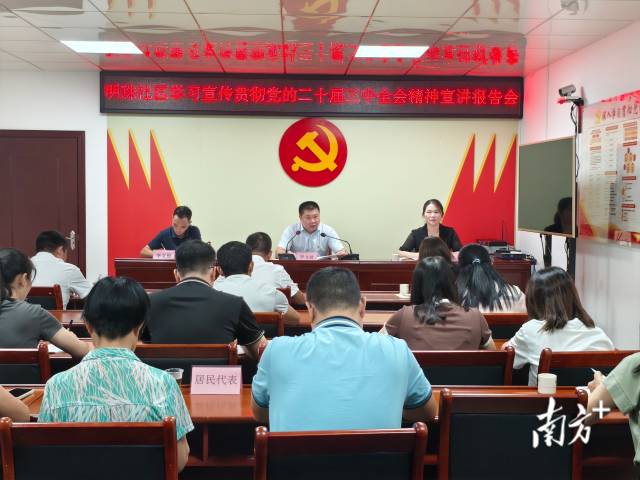 宣讲会上,罗文波围绕学习贯彻党的二十届三中全会精神,与街道、社区干部及党员代表、居民代表进行了亲切的交流,并详细了解社区“百千万工程”进展情况、基层党建、产业发展、人居环境管控、社区绿化等情况。
