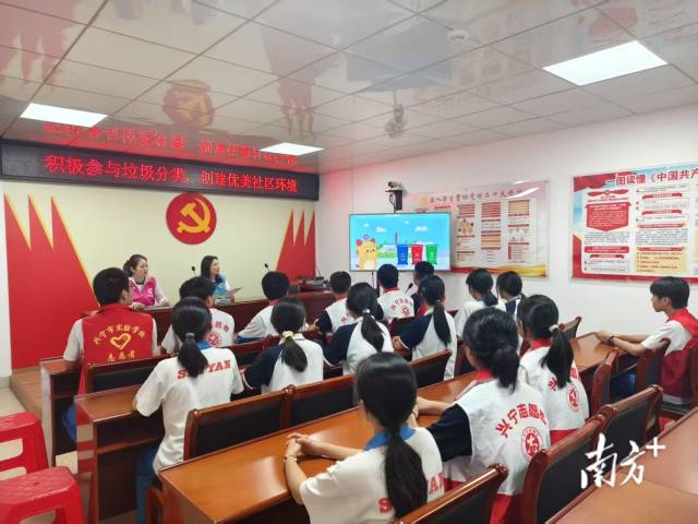 在志愿活动开始前,社区工作人员先为“社区小主人”开展了一场知识科普讲座。将垃圾分类宣传与校园教育深度融合,通过举办讲座,社区工作人员以“厨余垃圾如何分类”等生活化案例为切入点,向学生们详细讲解垃圾分类的知识和技巧,通过“废旧电池属于有害垃圾”“果皮属于厨余垃圾”等互动问答,帮助学生们快速掌握分类要点。