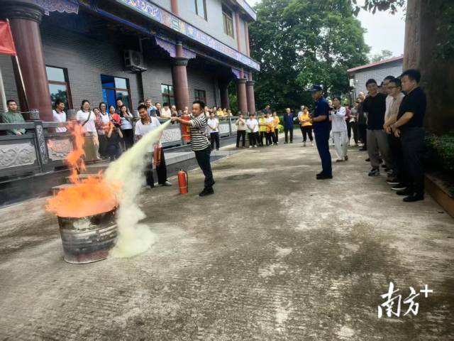 随后,在消防员的专业指导下,养老院工作人员纷纷上前,亲身体验使用灭火器扑灭模拟油盆火灾。起初部分人员因紧张操作略显生疏,但在消防员耐心细致的指导下,大家迅速掌握要领,成功扑灭明火,有效提升了实战能力。