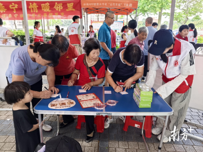 义剪摊位上,理完发的奶奶照着镜子直乐:“志愿者手艺不错,邻里节办得比‘赴圩日’还热闹!”广东科技学院的学生志愿者也没闲着,把摊位支起来,不断向来往居民分发绿豆汤等解暑饮品,一位群众端着碗直夸:“最近天气热,这红豆沙,喝在嘴里凉凉的,流向心里甜甜的。”