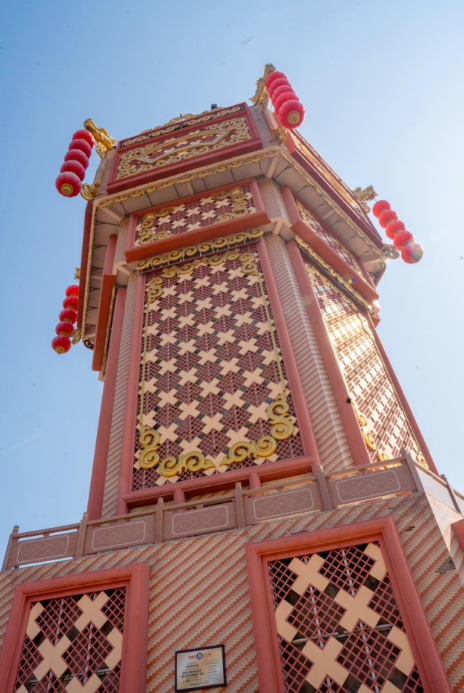 图书馆原馆长、民俗专家黄红亮就将上灯的传承脉络清晰地分为两条主线:社会传承与家族传承。社会传承,是技艺的流传、组织的延续、超越血缘的公共记忆;而家族传承,则是血脉里的烙印,是融于日常生活的自豪感。 举行“上灯”仪式时,龙狮腾跃,锣鼓喧天。受访者供图 “想让更多人知道,我们兴宁还有这样的节日。”李佳举起手机,将乡间的热闹裁剪成短视频,镜头成了一种新的“言传身教”。她的拍摄质朴而真切,有时对准梁间那盏缓缓上升的花灯,有时掠过大伙儿笑意盈盈的脸庞。 “客家人的比例其实还是蛮多的,”她发现,这些短视频不仅让外地亲友思忆故乡,也吸引着许多散落各地的客家手足。那些在山东、四川,甚至更远地方的朋友,会私信问她:“这是哪里?你们那边还没过完年吗?” 熙和湾客乡文化产业园内,标志性建筑“花灯楼”获吉尼斯世界纪录“最大灯笼型建筑”。柯学潜 摄 与此同时,古老的灯火正尝试照亮更远的道路。 在黄红亮眼中,产业是习俗传承与发展的关键一跃。“搞‘上灯节’,如果你没有产业去支撑,它是走不远的。”黄佑鹏同样强调,“民俗和文化遗产要传承保护,关键要它发展”,其核心方向是“将‘上灯’习俗转化为产业、转化为经济”。 在径南镇星耀村,作为“暖灯”仪式的“火把节”正点燃文旅产业的火种。黄红亮指出,它从宗族仪式演化为吸引上万游客的文旅景致,“发展产业不仅在于吸引游客,更在于让本地人重新发现自身文化的价值,形成文化自信的良性循环。” 每年正月十五,星耀村举行火把巡游活动。受访者供图 无论是移风易俗的思索,还是产业化的实践,都在为这盏花灯寻找新的光源。它们关乎存续,亦关乎生长。 一盏灯究竟能亮多久?在兴宁,只要围龙屋的瓦檐还托举月光,只要游子的归来还召唤乡音,这盏灯,便会长明。